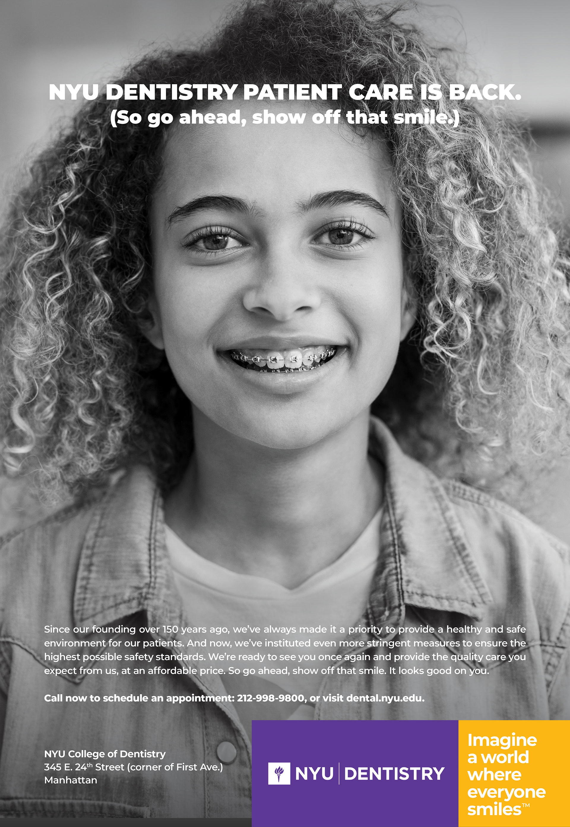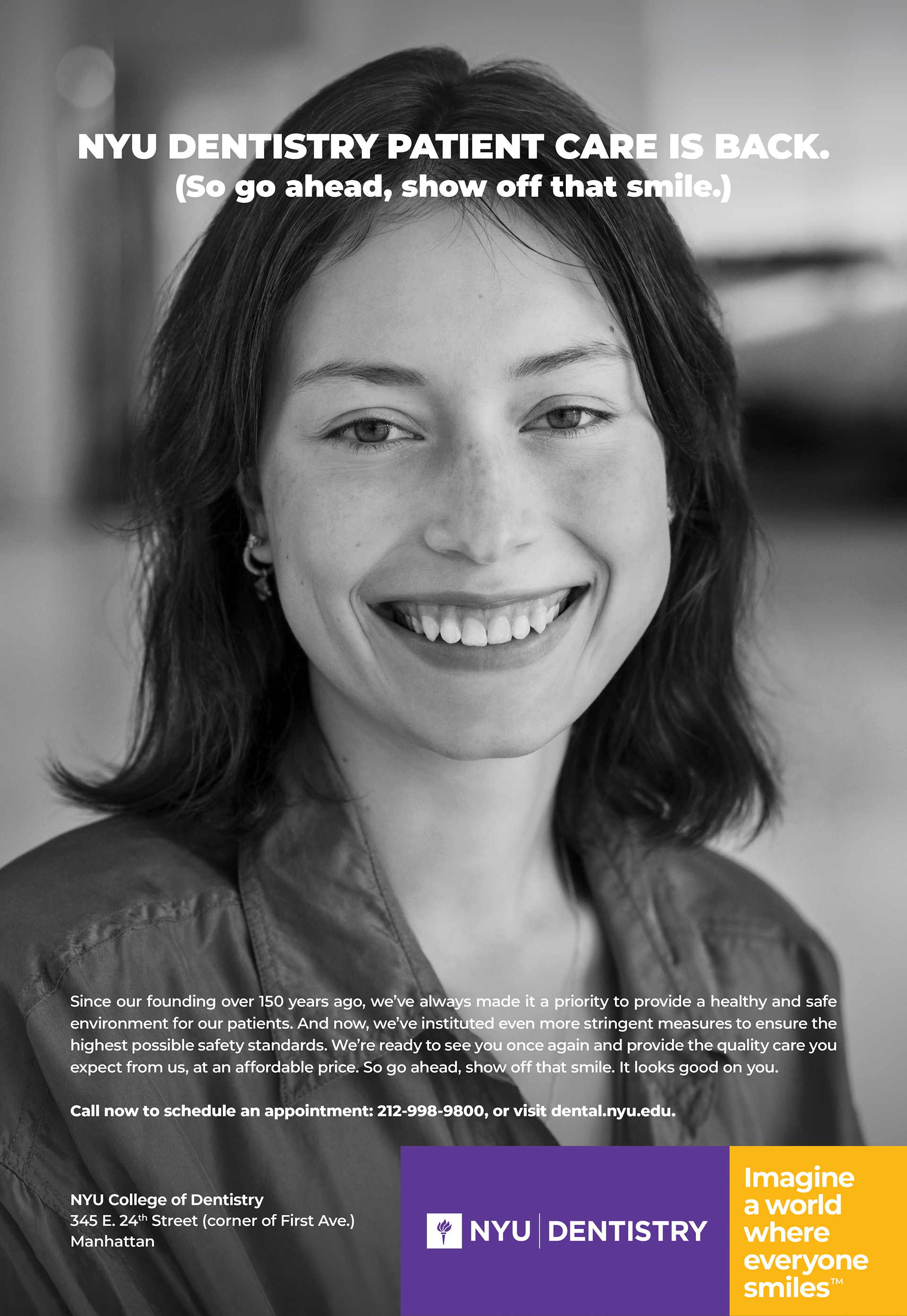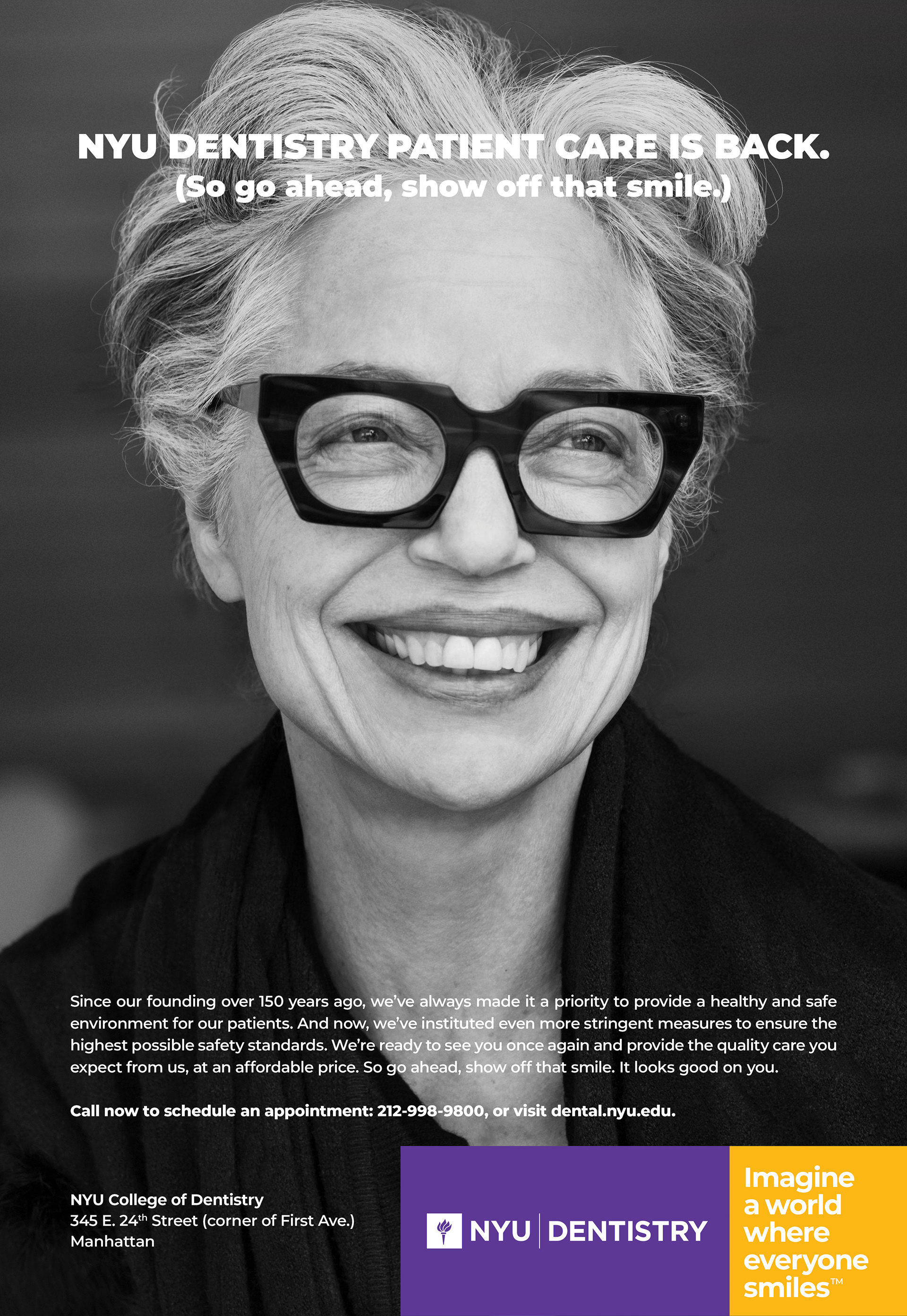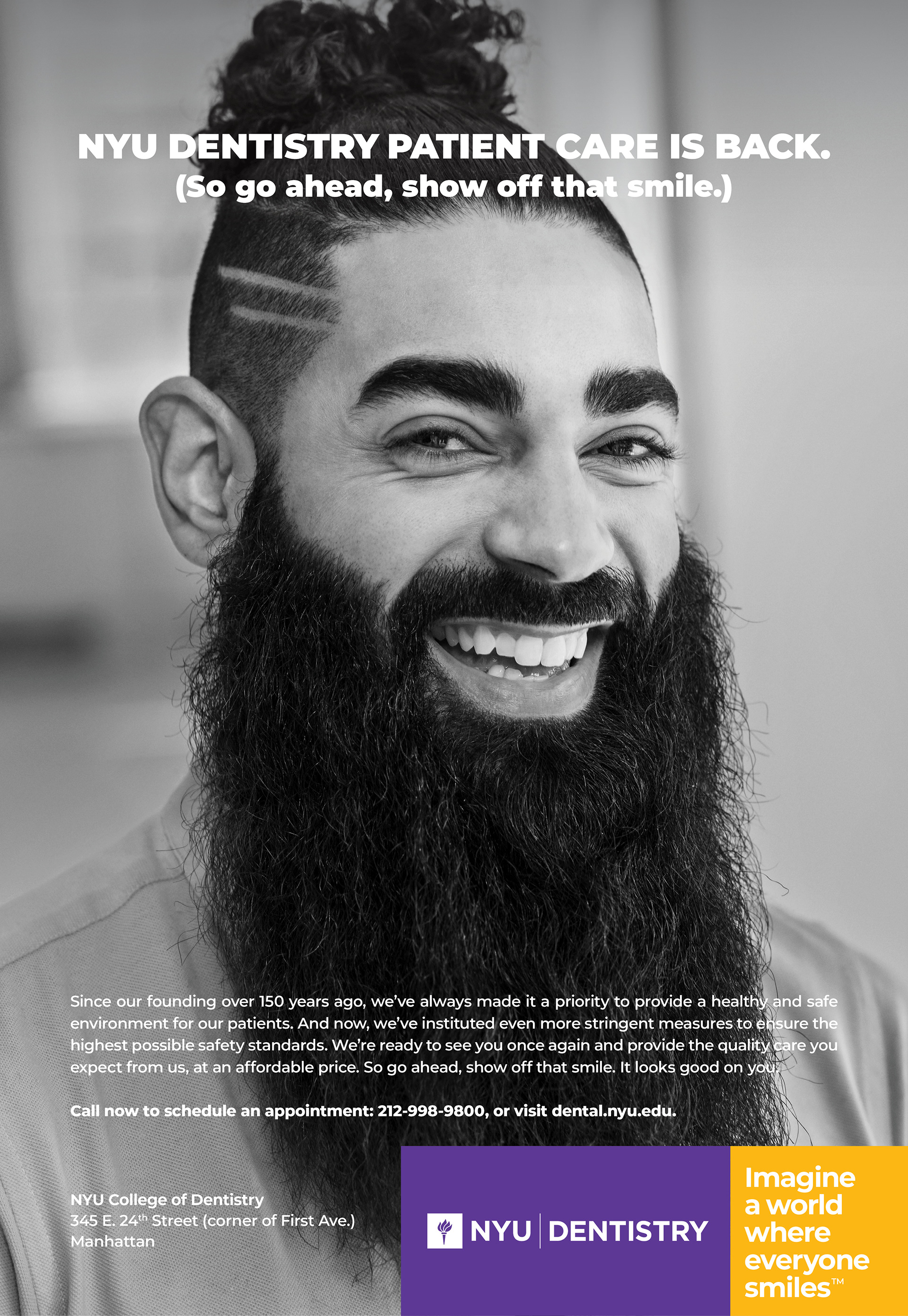 Art direction, design and production of final deliverables for NYU Dentistry's rebranding campaign, including presenting concept to client, choosing talent, and assisting with studio photoshoot.