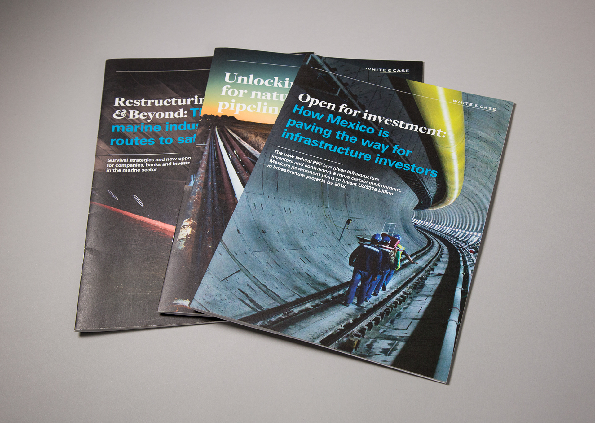 Graphic design for a global law firm, including marketing communications, annual reports, social responsibility, events and publications.